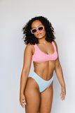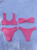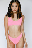 Our classic scoop neck bikini top. Made with luxe crinkle textured fabric in the perfect bubblegum pink color.