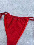 - Ruched bottoms with adjustable mini/cheeky coverage and side ties