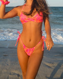 • Exclusive pink and orange hibiscus print designed in collaboration with @shopsunhoney