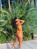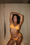 The Leo bottoms have a ruched waistline with thin tie straps. Adjustable mini to cheeky coverage.