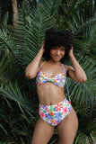 Meet our new and improved high-waisted bottoms- the Thea. She has a center seam in the back for the perfect fit and comes in two coverage options- mini and moderate.