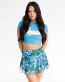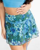 Floral Mesh Mini Skirt with Ribbon | Blue/Green