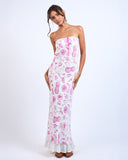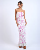 Fruit Print Strapless Maxi Dress | Fuchsia