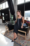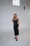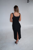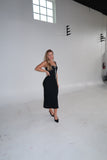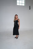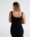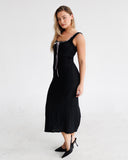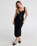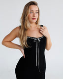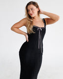 Lace Knit Midi Dress with Ribbon | Black