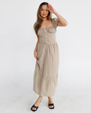 Plaid Puff Sleeve Maxi Dress | Sand