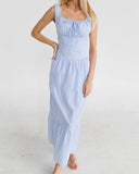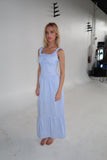 Prairie Tiered Maxi Dress | Blue/White Pinstripe
