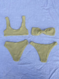 Our classic scoop neck bikini top. Made with luxe crinkle textured fabric in the perfect light yellow color.