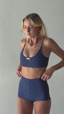 - Model 1 is wearing a size S top and S bottom: 5'7, 32C, 25" waist