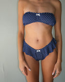 - Navy polka dot print bikini bottom with a cute white bow detail