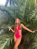 The Ashlund One Piece is the Izzy top as a one piece! The coverage on the top, neck and back tie, and side ties on the bottom are all adjustable. This style features flattering side cutouts and mini/cheeky back coverage.