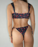 - If in between sizes, we recommend sizing up for down for your desired rise/coverage. The ties make the waist adjustable and coverage can be adjusted by scrunching the fabric.