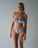 - Blue toile vintage floral print bikini top with a cute blue bow