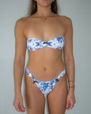- Blue toile vintage floral print bikini top with dainty blue bows