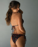 - Black and red cherry print bikini top with a cute red bow