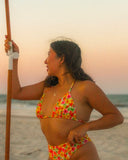 - If in between sizes, we recommend sizing up or down for your desired coverage. The ties and triangle cups make the fit very adjustable.