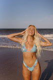 - If in between sizes, we recommend sizing up or down for your desired coverage. The ties and triangle cups make the fit very adjustable.