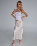 - Styled with our 'Bow Print Satin Maxi Skirt' and 'Lace Asymmetrical Skirt'
