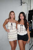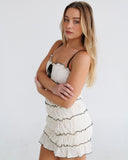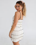 Ruched Contrast Trim Mini Dress | Ivory/Black