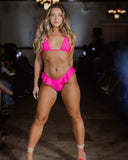 - If in between sizes, we recommend sizing up or down for your desired coverage. The ties and triangle cups make the fit very adjustable.