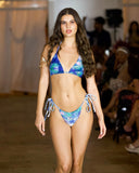- If in between sizes, we recommend sizing up or down for your desired coverage. The ties and triangle cups make the fit very adjustable.