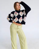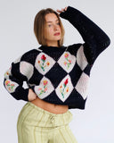 - Luxurious, soft knit sweater with diamond and floral pattern