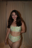 • You can choose any size and style combination. Click here to view the top styles and here to view the bottom styles. Model 1 is wearing the Callie top and Thea mini bottoms